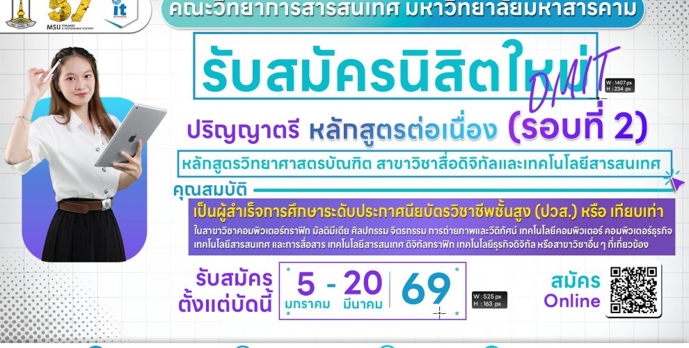 ประกาศมหาวิทยาลัยมหาสารคาม เรื่อง การรับสมัครบุคคลเข้าศึกษาต่อในระดับปริญญาตรี ประจำปีการศึกษา 2569 หลักสูตรวิทยาศาสตรบัณฑิต (วท.บ.) สาขาวิชาการรักษาความมั่นคงปลอดภัยไซเบอร์ (หลักสูตร Sandbox) คณะวิทยาการสารสนเทศ (รอบที่ 2)