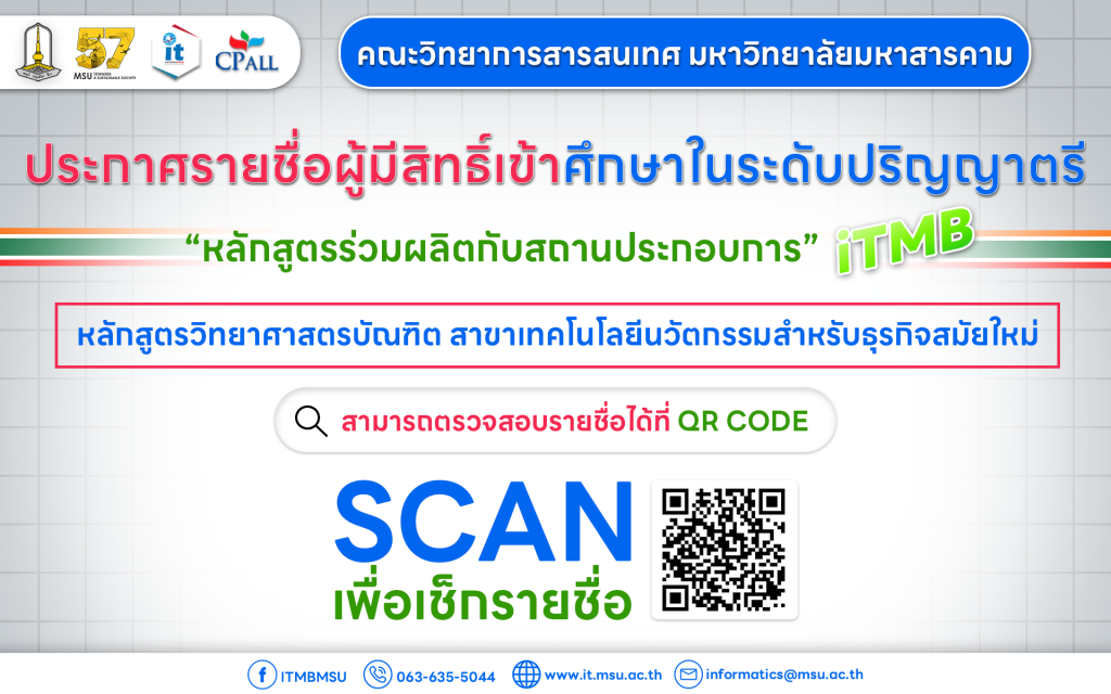 ประกาศมหาวิทยาลัยมหาสารคาม เรื่อง รายชื่อผู้ผ่านการสอบสัมภาษณ์เข้าศึกษาต่อในระดับปริญญาตรี ประจำปีการศึกษา 2569 รอบที่ 1 Portfolio โครงการเทคโนโลยีนวัตกรรมสำหรับธุรกิจสมัยใหม่ คณะวิทยาการสารสนเทศ