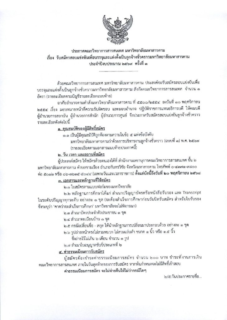 ผู้สนใจสามารถสอบถามข้อมูลเพิ่มเติมได้ที่ งานบุคคล คณะวิทยาการสารสนเทศ โทร.0-4371-9800 ต่อ 5012 หรือ 06-3635-5044