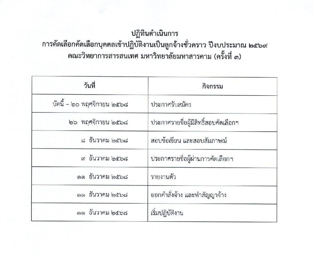 คณะวิทยาการสารสนเทศ มหาวิทยาลัยมหาสารคาม เปิดรับสมัครบุคคลเพื่อจ้างเป็น พนักงานขับรถยนต์ ประจำปีงบประมาณ พ.ศ.2569