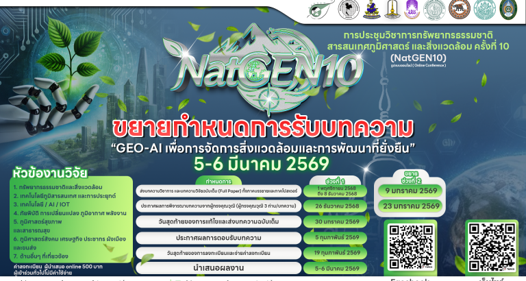 ประชาสัมพันธ์จาก ภาควิชาภูมิสารสนเทศ มหาวิทยาลัยมหาสารคามเรื่อง การขยายเวลาการรับบทความวิจัย บทความวิชาการในการประชุมวิชาการทรัพยากรธรรมชาติ สารสนเทศภูมิศาสตร์ และสิ่งแวดล้อม ครั้งที่ 10