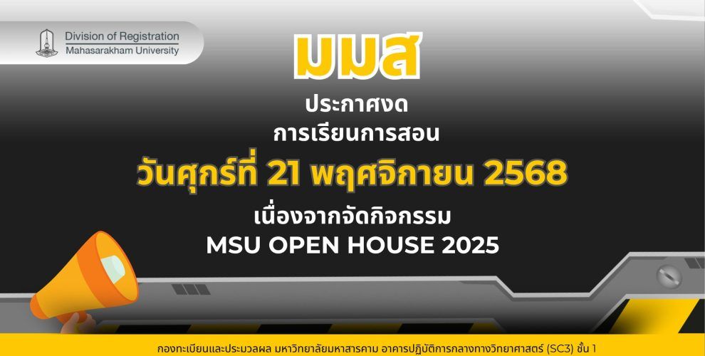 ประกาศ เรื่อง มหาวิทยาลัยมหาสารคาม งดการเรียนการสอน