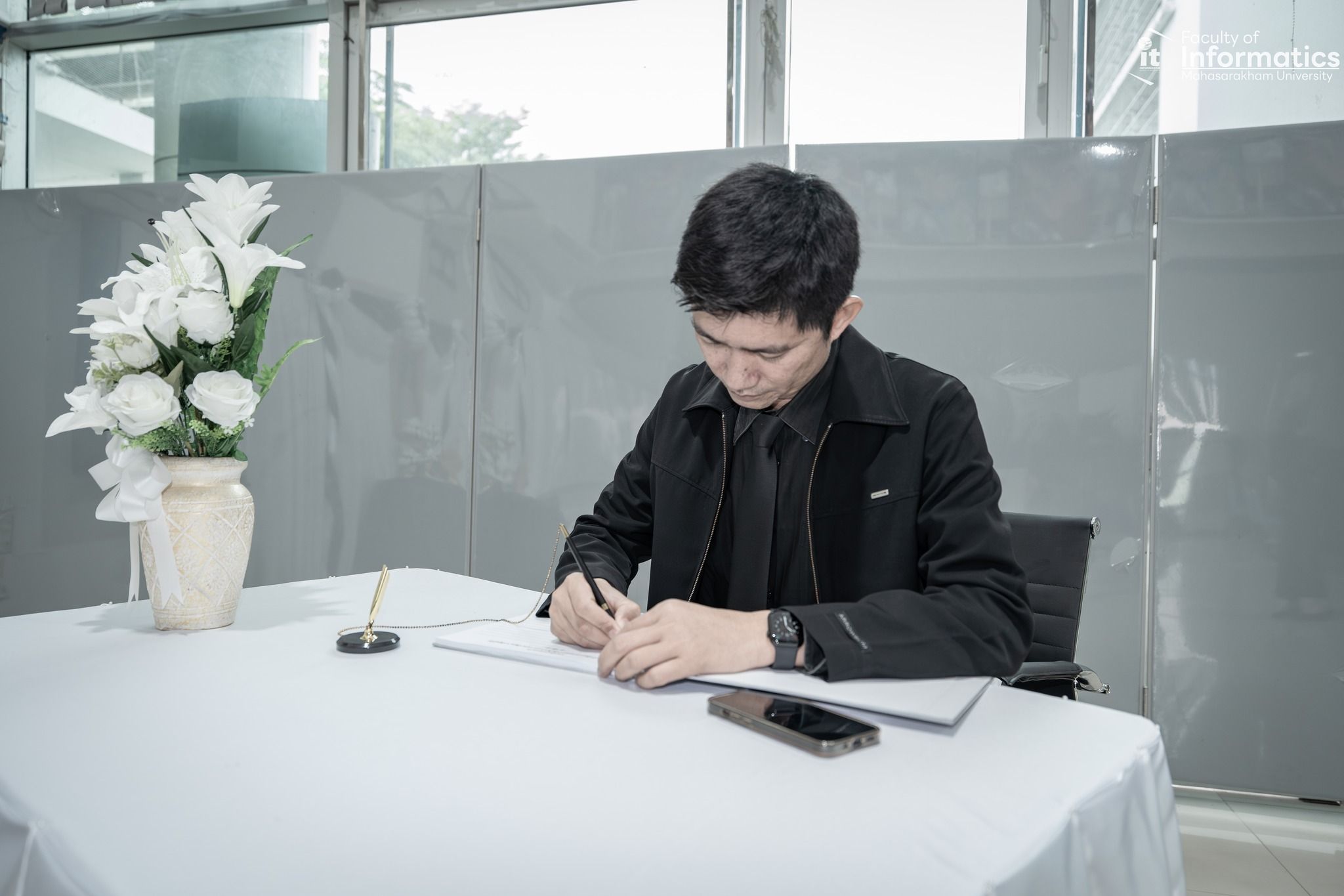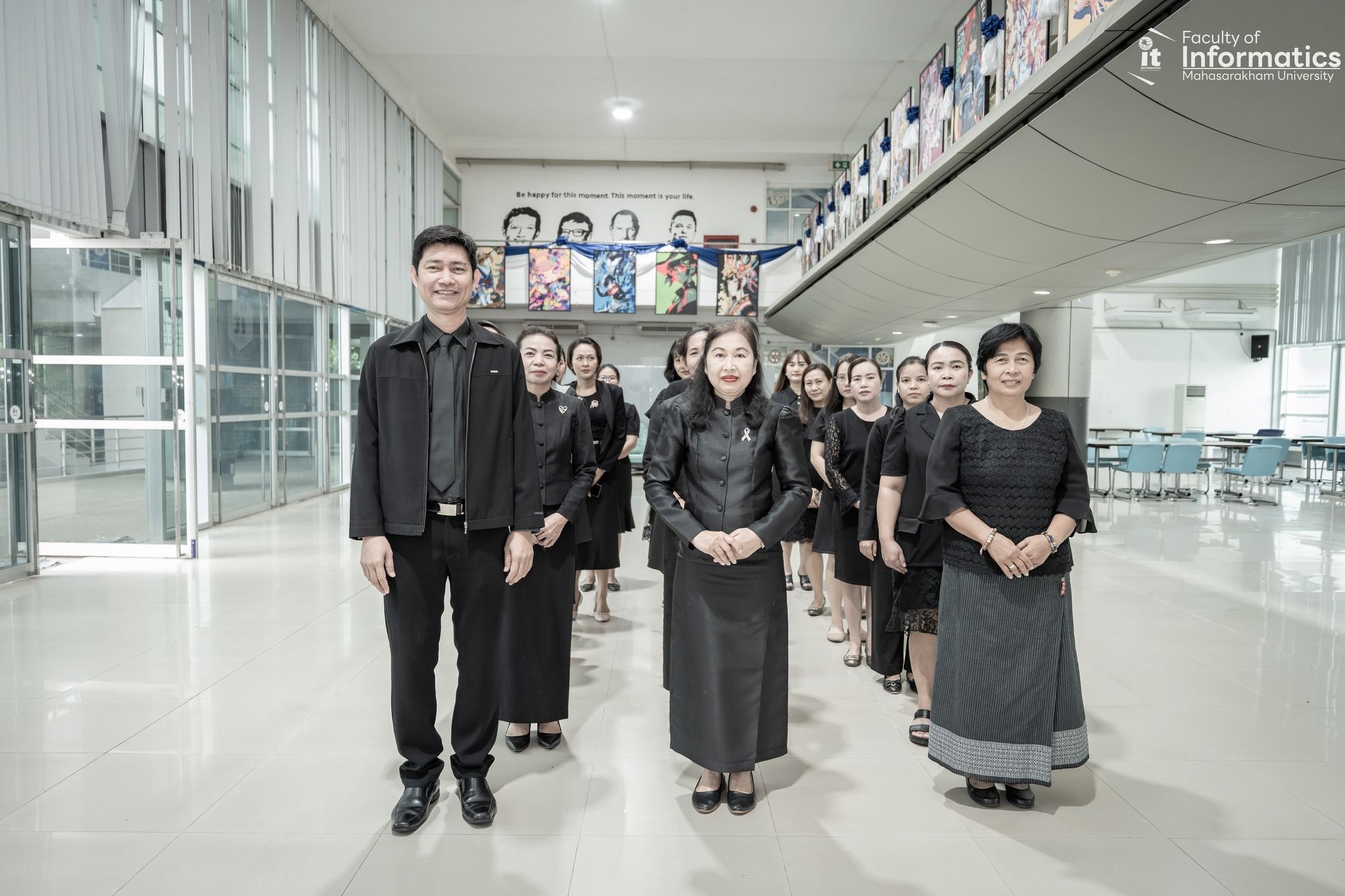 รองศาสตราจารย์ ดร.จันทิมา พลพินิจ คณบดี พร้อมด้วยผู้บริหารและบุคลากรคณะวิทยาการสารสนเทศ มหาวิทยาลัยมหาสารคาม ร่วมลงนามถวายความอาลัยแด่สมเด็จพระนางเจ้าสิริกิติ์ พระบรมราชินีนาถ พระบรมราชชนนีพันปีหลวง ณ บริเวณห้องโถง ชั้น 2 หน้าสำนักงานเลขานุการ คณะวิทยาการสารสนเทศ