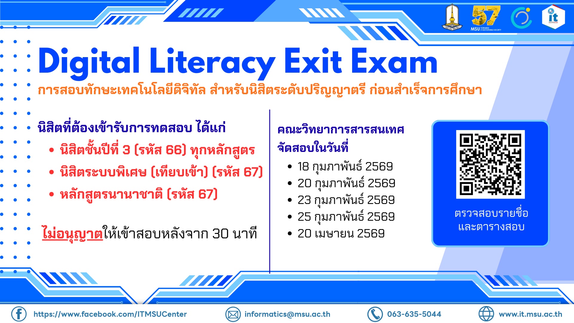 ประชาสัมพันธ์การสอบ Digital Literacy Exit Exam