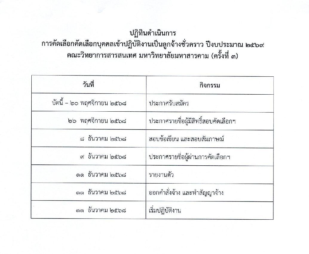 ประกาศ เรื่องรับสมัครงาน คณะวิทยาการสารสนเทศ มหาวิทยาลัยมหาสารคาม