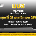 มหาวิทยาลัยมหาสารคาม งดการเรียนการสอน ในวันศุกร์ที่ 21 พฤศจิกายน 2568 เนื่องในโอกาสจัดงาน MSU OPEN HOUSE 2025